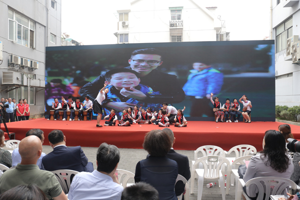 不仅如此,听障儿童现场为大家带来了诗歌朗诵《我们》,该节目由5名听障儿童表演,节目在“‘花开有声’——江苏省第二届听障儿童演讲比赛”中获得全省团体总分第一名的好成绩。同时,鼓楼特殊教育学校36名智障儿童和老师表演了音诗画《阳光路上》。